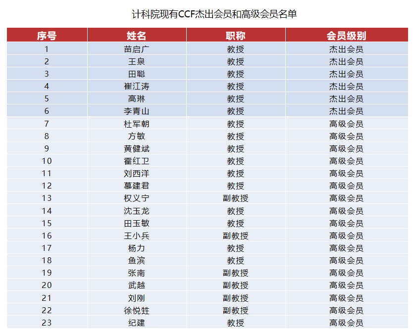 喜报!计科院新增2名CCF杰出会员、3名CCF高级会员