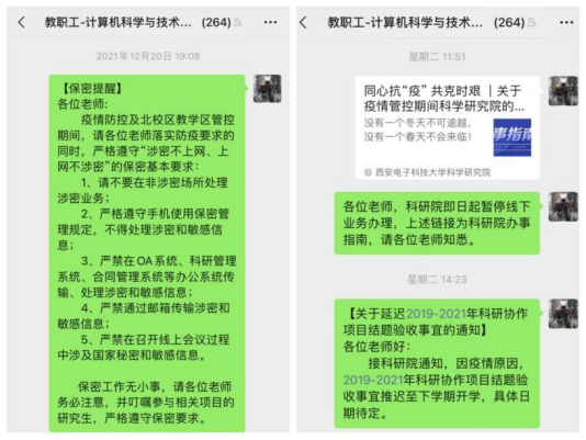 学院第一时间落实学校科研工作疫情防控部署,要求教师不组织人员聚集性现场科研活动,鼓励教师以语音视频、线上会议等方式开展科研讨论、学术交流活动,杜绝人员聚集带来的安全隐患。办公室管理人员通过邮件、微信、网站、电话等多种渠道及时传达线上办事指南、项目申报通知等信息,确保信息通知及时传达到位。在保密安全方面,提醒学院师生严格遵守“涉密不上网、上网不涉密”的保密基本要求。同时,加大线上服务和协作,非必需或紧急业务根据实际情况线上办理或推迟开展,全力保障疫情期间学院科研工作正常运转。