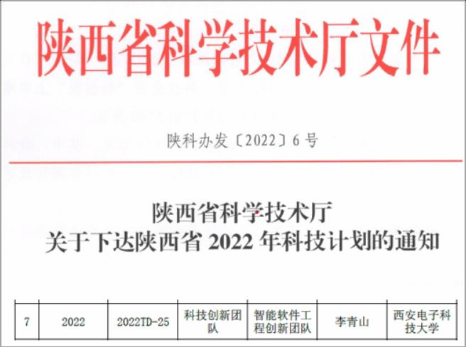 (通讯员 徐悦甡)近日,陕西省科技厅正式下发《陕西省科学技术厅关于下达陕西省2022年科技计划的通知》,其中公布了2022年陕西省科技创新团队计划名单,由今年会jinnianhuicom(国家特色化示范性软件学院)党委书记、软件工程学科负责人、西安市智能软件工程重点实验室主任李青山教授负责的智能软件工程创新团队成功入选。