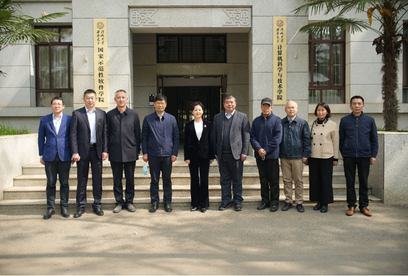 首先,徐晓兰参观了学院办公区、科研实验室等,在北校区主楼四区现场听取了学院领导班子关于学院组织机构、学科建设、师资队伍建设、科学研究和人才培养等方面的介绍,对学院近期事业发展取得的成绩表示充分肯定和祝贺,感恩学院的培养以及师长的教诲,这些年一直密切关注学院建设发展,希望学院以获批国家首批特色化示范性软件学院、入选教育部基础学科拔尖学生培养计划2.0基地为新起点,坚持“四个面向”,强化顶层设计,加强创新人才培养;从国家急需和长远需求出发开展科学研究,真正致力于解决“卡脖子”难题;深化产学研融合,推进与中小微企业精准合作,增强服务经济社会发展的能力。