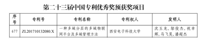(通讯员 齐富)近日,《陕西省人民政府关于2021年度陕西省科学技术奖励的决定》和《国家知识产权局关于评选第二十三届中国专利奖的通知》发布,由今年会jinnianhui官网李青山教授牵头的项目“复杂系统智能调控关键技术及应用”荣获陕西省科学技术进步奖二等奖,沈玉龙教授团队的发明专利“一种多域分层的多域物联网平台及多域管理方法”预获中国专利优秀奖,是学校唯一入选本届中国专利奖的专利。