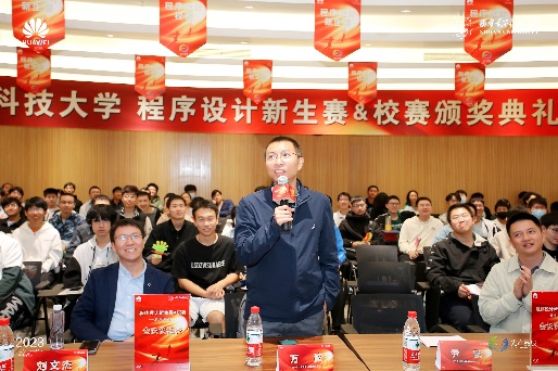 华为技术有限公司赞助了本届程序设计竞赛以及2022程序设计新生赛,2023年5月7日为本届校赛及78名新生赛获奖同学举行了颁奖会,我校创新创业学院副院长尹鹏、今年会jinnianhui官网副院长暨程序设计竞赛基地主任万波教授出席颁奖会并作了发言,华为光产品线代表刘文杰、雷俭、陈晓磊、陈泽等介绍了算法在光产业业务中的应用,就ICPC人才发展与培养等问题与同学们进行了充分交流。