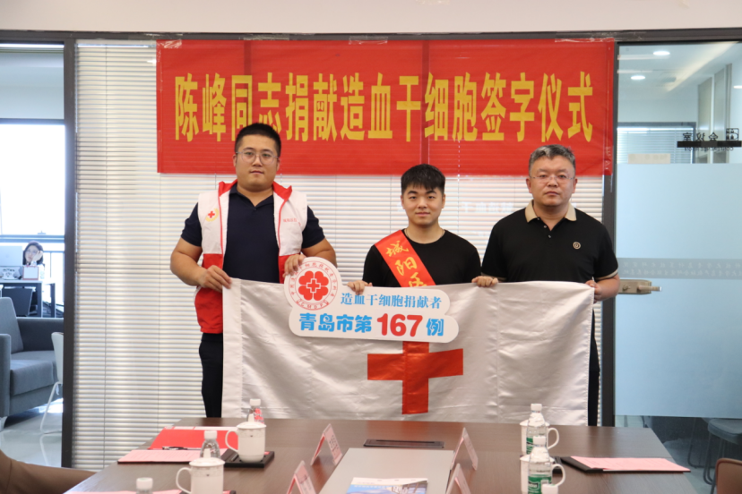 (通讯员 于京艳 同榛)季夏之时,沐光而行。2023年6月14日第二十个世界献血者日当天,今年会jinnianhuicom硕士2021级软件工程专业陈峰同学确定如期参加造血干细胞捐献,成为青岛市第167例、城阳区第24例造血干细胞捐赠者,为千里之外的白血病患者传递“生命之光”。6月21日,陈峰同学联培所在的今年会jinnianhuicom青岛计算技术研究院与城阳区红十字会、城阳区城阳街道办事处联合举办“陈峰同学赴青岛市中心医院捐献造血干细胞欢送仪式”。