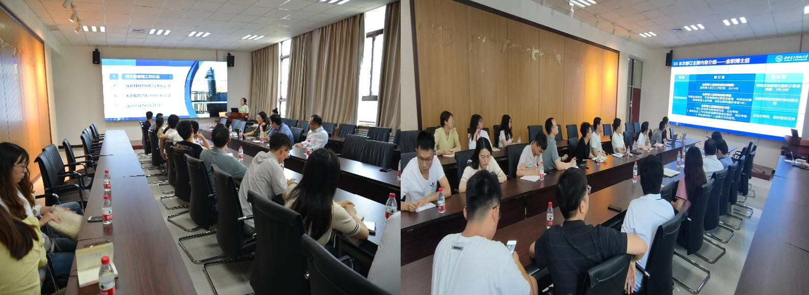 招聘科乌晶晶围绕新进教师成长路径,从培养任务、薪酬待遇、晋升通道等多方面对学校新出台的博士后及准聘制相关政策、准聘考核及准聘转长聘相关政策进行了全方位解读,并进一步介绍了新设博士后科研流动站申报工作的专业范围、条件、申报程序及要求等相关内容。人才开发科尹雪聪从高层次人才队伍建设出发,结合不同人才计划特点及学校人才队伍建设情况,分享了人才计划/项目申报、华山学者岗位体系基本情况及修订情况、各类人才宣传渠道等助力教师个人发展的相关制度政策及人才计划。