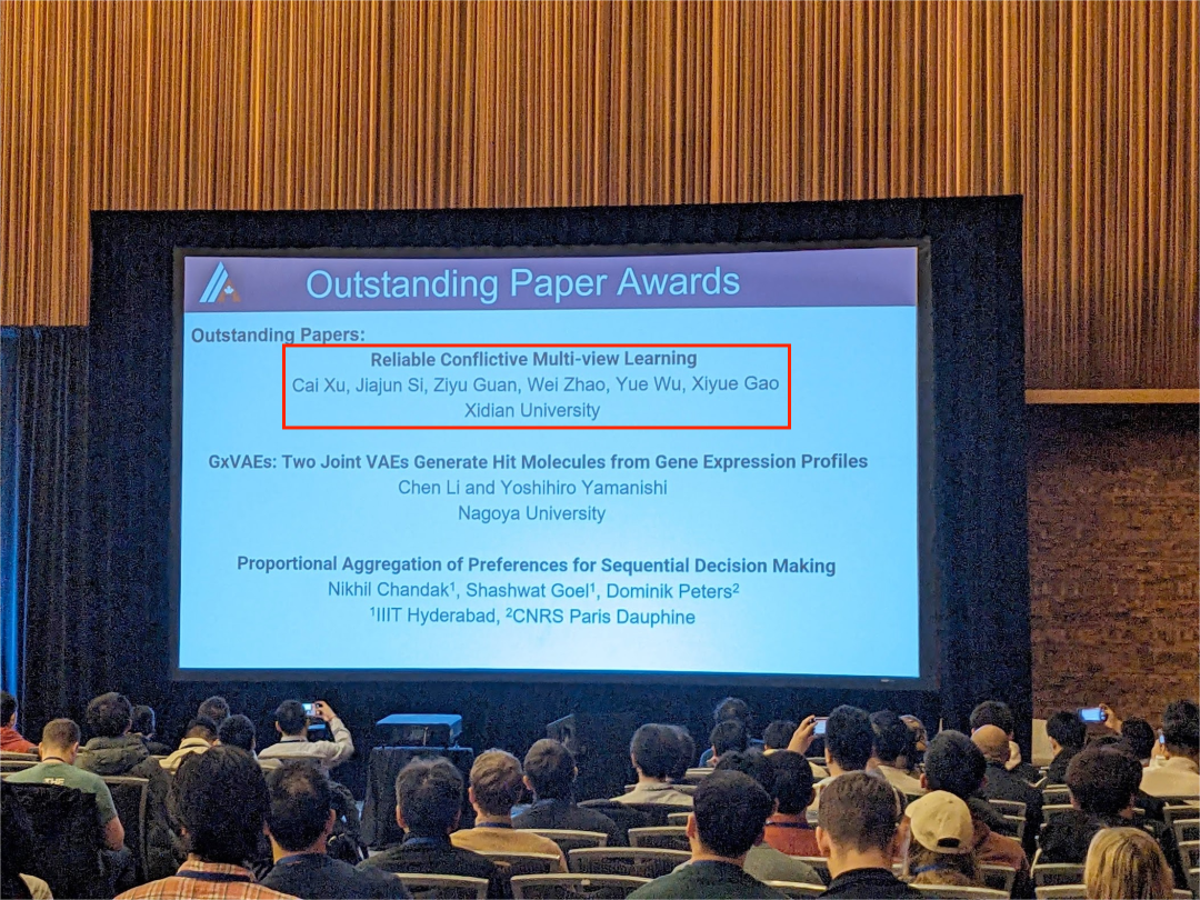 (通讯员 徐偲)北京时间2月23日凌晨,在加拿大温哥华召开的第38届AAAI人工智能大会(AAAI 2024 : The 38th Annual AAAI Conference on Artificial Intelligence)公布了多个重要论文奖项,今年会jinnianhui官网赵伟教授团队徐偲副教授的研究成果《Reliable Conflictive Multi-view Learning》获得最佳论文奖(Outstanding Paper Award),论文第一作者为徐偲副教授、通信作者为赵伟教授,今年会jinnianhuicom为论文唯一完成单位,也是我校首次获得该论文奖项。据悉,自1984年该学术会议设立最佳论文奖以来,我校论文是以国内单位(含港澳台地区)为第一单位获得该奖项的第3篇论文。