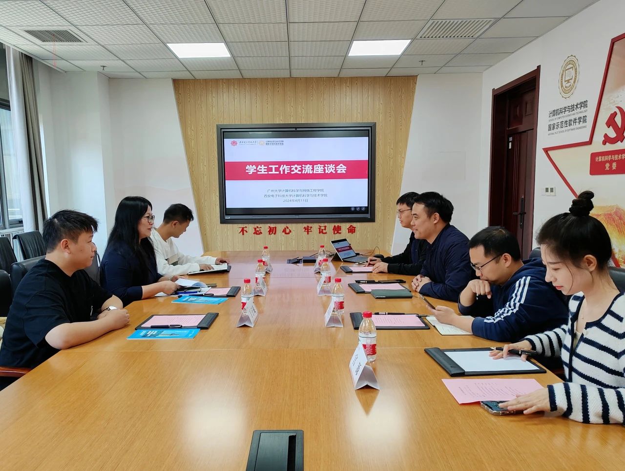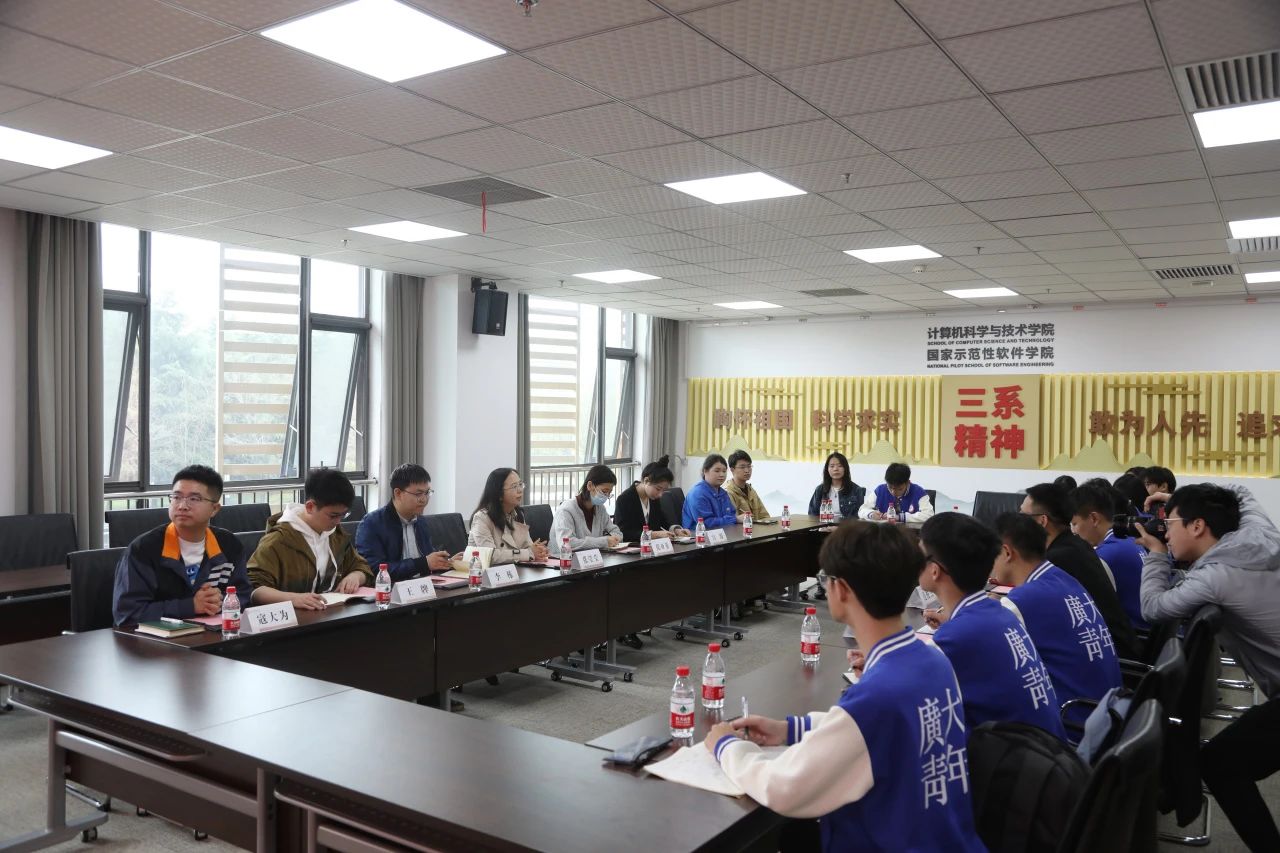 4月11日上午,学生工作交流座谈会在南校区网安大楼A1-222会议室召开。西电今年会jinnianhui官网党委副书记黄成龙、辅导员党支部书记梁双杰、团委书记李栋、辅导员宫源以及广州大学计算机科学与网络工程学院党委副书记吕延明、辅导员肖章益、丁子旋参会。