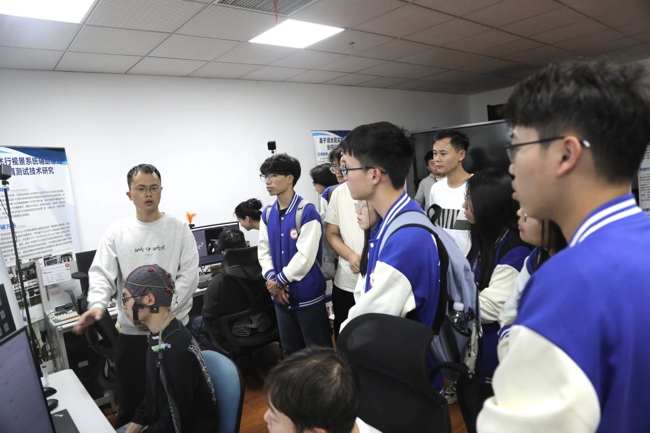 此外,计科院还组织访学学生参观了陕西省智能人机交互与可穿戴技术重点实验室。该重点实验室依托计算机科学与技术国家一级学科,与西安航空计算技术研究所联合共建,设立了可穿戴计算设备硬件体系架构、可穿戴系统融合进化协同处理、新型人机交互技术与方法、智能交互设计与应用四个研究方向。在学院研究生兼职辅导员苗毅的带领下,访学学生详细了解了实验室的研究方向及多项代表性成果,充分领略科研魅力,深刻感受科技力量。