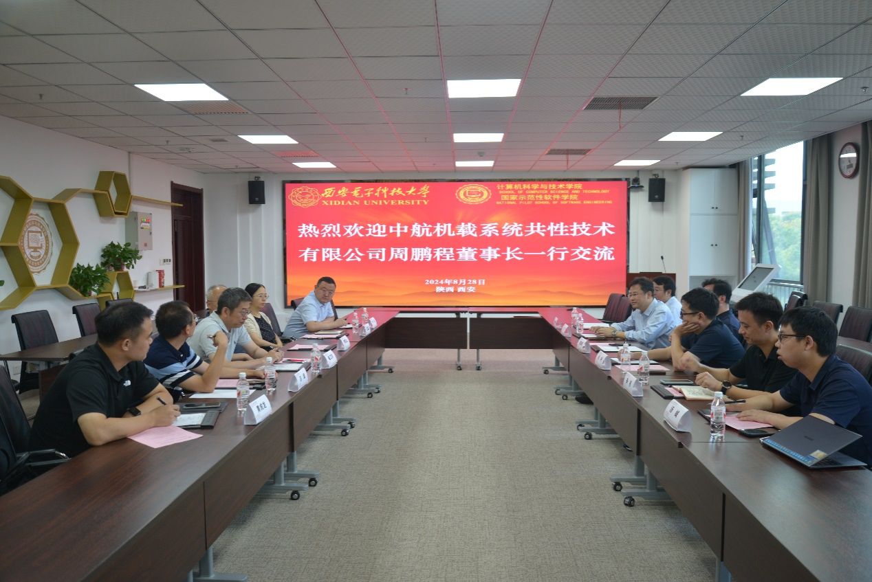 (通讯员 陈龙)8月28日下午,中航机载系统共性技术有限公司(以下简称机载共性技术中心)周鹏程董事长带队来院开展校企合作交流。参加交流活动的人员还有机载共性技术中心副总经理、我院院友杜林以及共性中心副总师于沛、人力资源部部长朱亮及相关骨干成员,学院党委书记李青山教授、执行院长崔江涛教授、副书记张莹莹、副院长万波教授、副院长李瑞教授、副书记黄成龙等。会议由李青山教授主持。