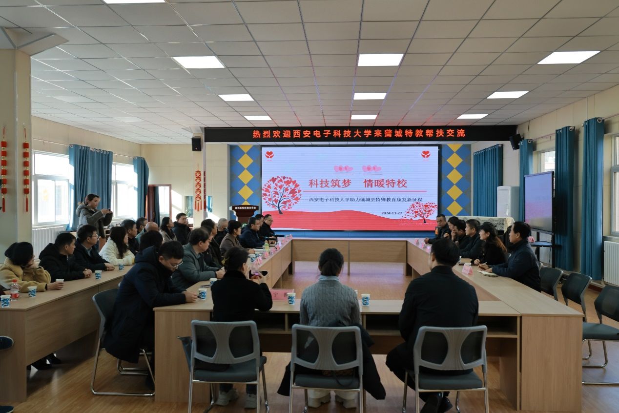 (通讯员 同榛 宁静)11月27日下午,西电今年会jinnianhui官网党委书记李青山、外国语学院党委书记徐战利分别带队,两学院领导班子成员、党支部书记代表、团委书记、教师代表等赴蒲城县特殊教育学校开展帮扶交流活动,本次活动是两院联动第二年来到蒲城县特殊教育学校。校工会常务副主席吴秀霞,与我院长期友好合作的西安葡萄城信息技术有限公司(以下简称“葡萄城公司”)党支部副书记、人事行政总监、工会主席卢智峰,党支部宣传委员、招聘经理曹巧,闫家村驻村第一书记李攀等共同参加了活动。