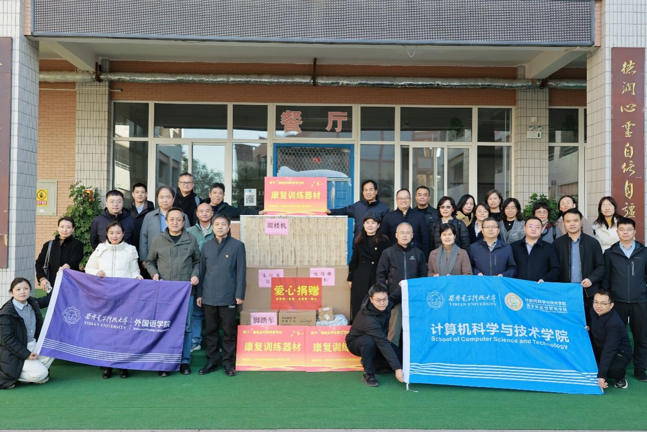 双方举行了物资捐赠仪式。学院前期充分调研蒲城县特殊教育学校需求,计科院积极联络葡萄城公司筹集爱心帮扶资金,外国语学院筹措赞助资金共同为特殊教育学校捐赠了爬楼机、电动康复机等一批急需的康复训练器材,本次捐赠将有效帮助蒲城县特殊教育学校学生开展康复训练。