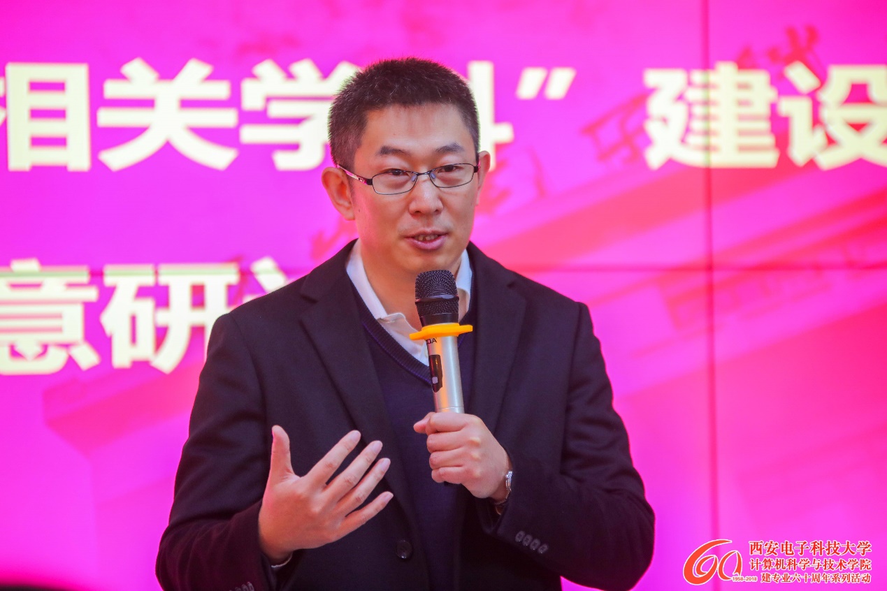 崔江涛代表学院对兰州大学等高校代表表示欢迎。他从成果奖励、学科水平、师资队伍、人才培养、优秀校友等方面对西电计算机科学与技术学科的发展历史和现状进行了详细介绍,提出要在现有学院及学科发展基础上采取超越领先的学院及学科建设的“三步走”中长期发展战略。