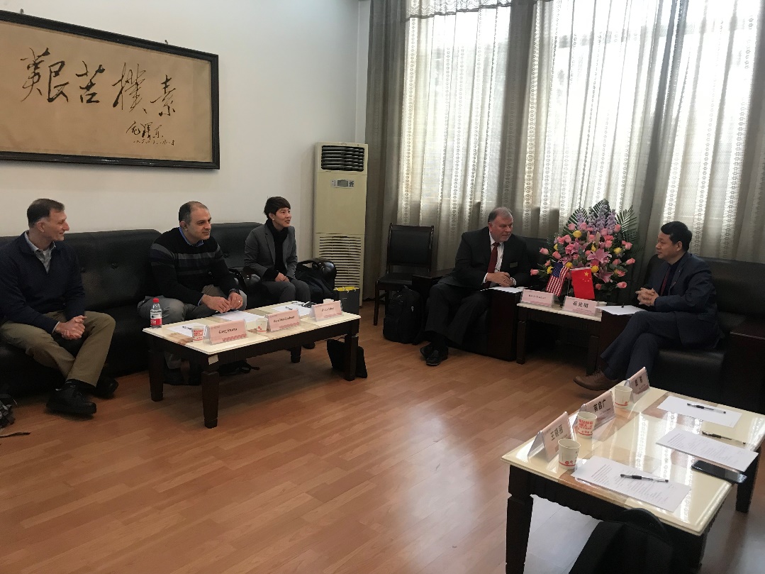 (通讯员 马丽叶 王晓丽)2018年12月7日上午,美国密苏里大学堪萨斯分校副校长Kevin Truman教授一行来访我校。计算机学院苗启广教授首先介绍了西电的历史和计算机学院的发展史,以及西电的国际合作与交流项目。然后Kevin Truman教授介绍了美国密苏里大学的相关情况。随后副校长石光明在北校区办公楼会客室会见了代表团,国际合作与交流部郭彤副处长和今年会jinnianhui官网代表参加了会见。