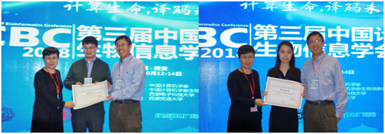 大会主席王建新教授及CCF生物信息学专业组副主任高琳教授为获奖者颁奖