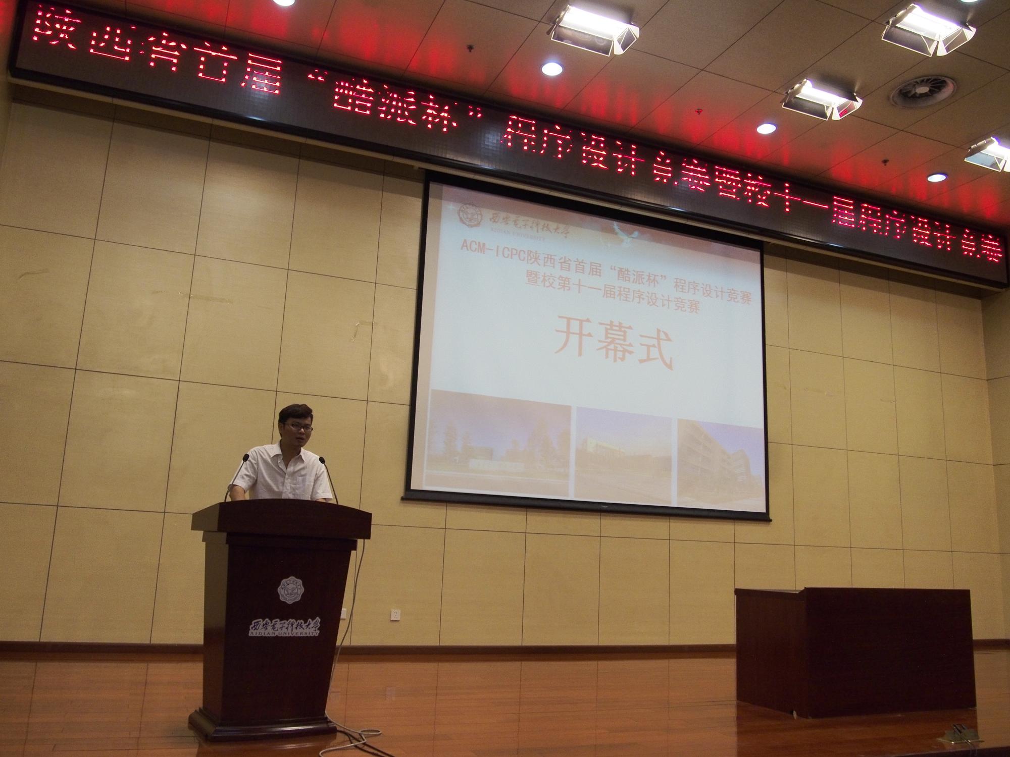 上午9点30分,开幕式在南校区行政楼206举行。130余名参赛选手和教练身着比赛服装参加了开幕式。今年会jinnianhuicom实验室与设备处处长黄大林、计算机学院党委书记于晓飞、副院长王泉、西安交通大学软件学院副院长陈建明以及赞助商宇龙计算机通信科技有限公司西安研究所所长周佳庆先生等嘉宾出席。ACM/ICPC中国西部指导委员会委员周鹏教授专程从美国赶来出席开幕式。