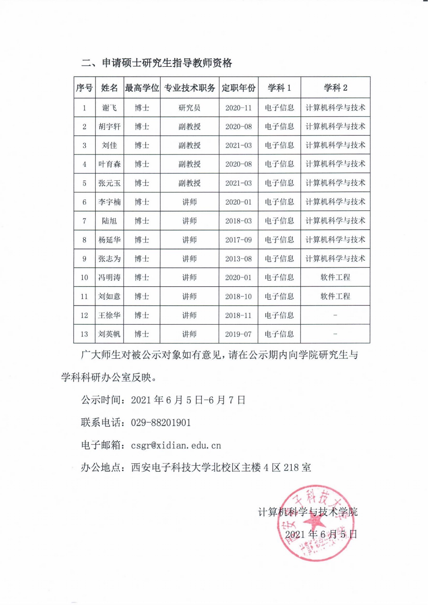 关于2021年研究生指导教师资格认定校内评审结果的公示