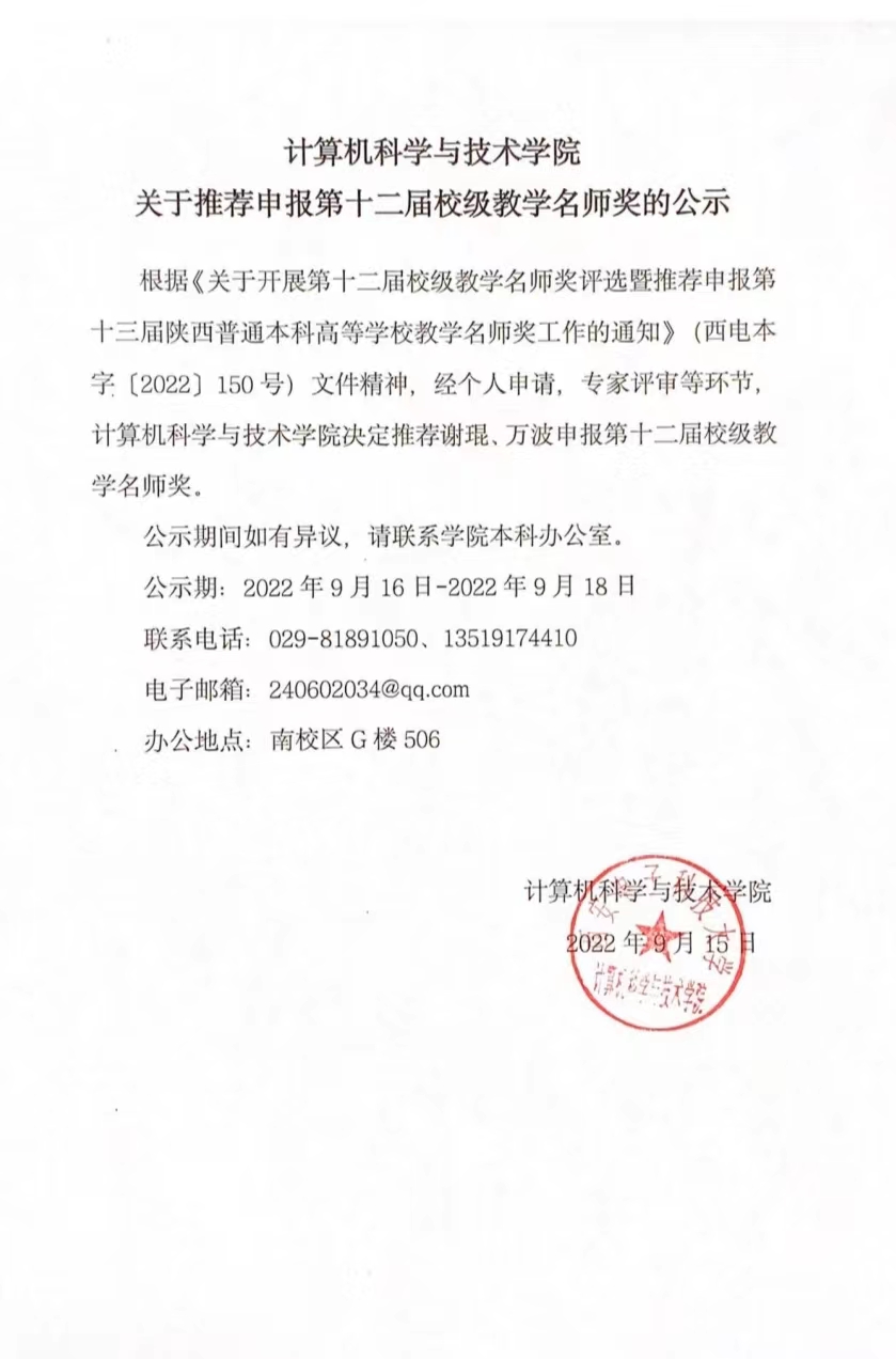 今年会jinnianhui官网关于推荐申报第十二届校级教学名师奖的公示