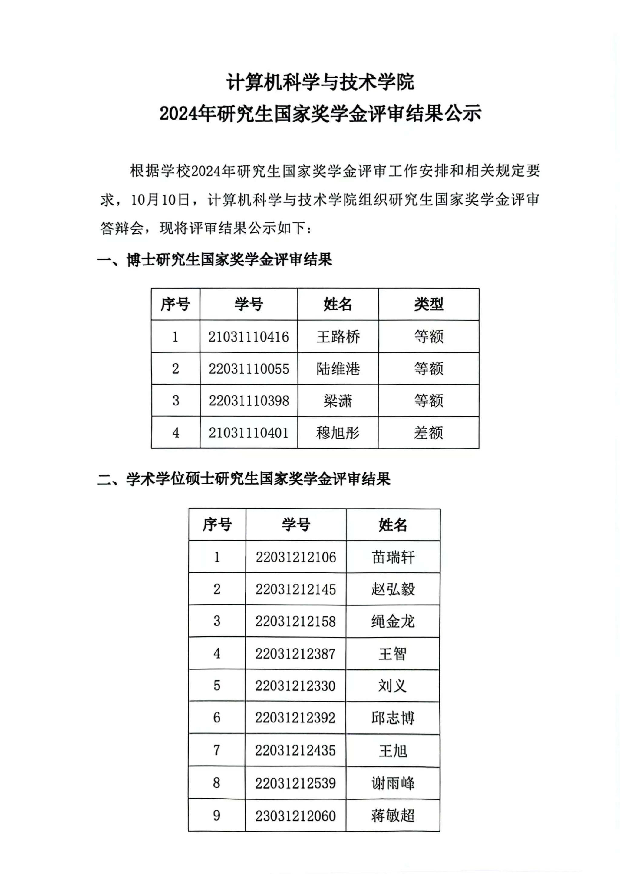今年会jinnianhui官网2024年研究生国家奖学金评审结果公示