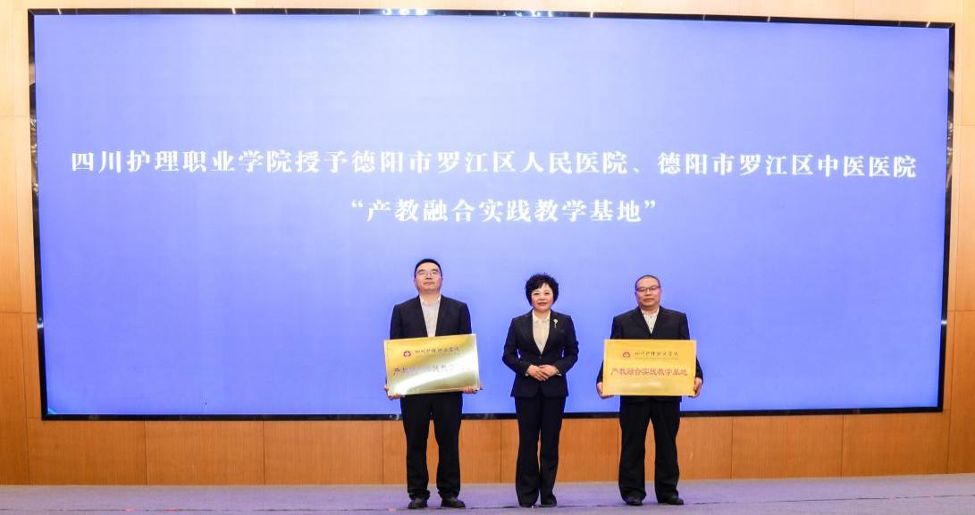 张先庚代表学院与罗江区人民政府签订了产教融合校地合作框架协议,向罗江区人民医院、罗江区中医医院授予“产教融合实践教学基地”。此次签约与授牌意味着学院支持罗江卫生健康事业高质量发展全面铺开,进一步推动了学院优质资源向地方区域延伸,彰显了学院在大健康职教的引领力及服务地方区域经济、提升地区卫生健康水平的服务力与贡献度。
