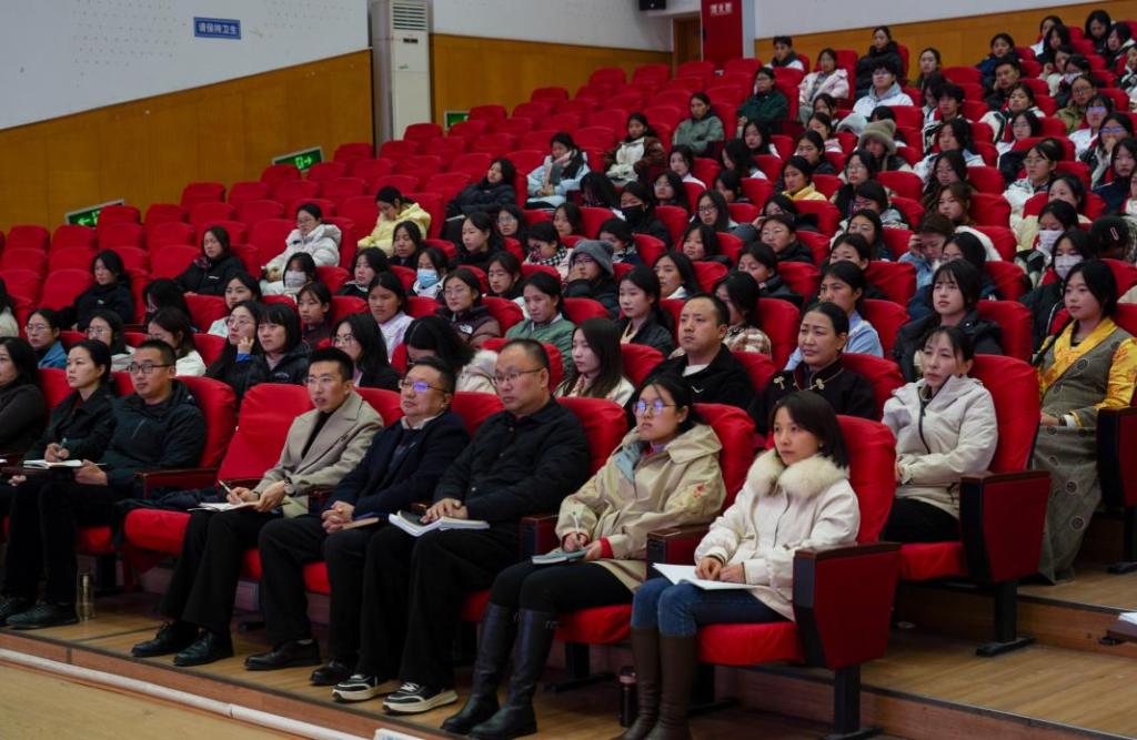 讲座中,张先庚结合党的二十届三中全会、省委十二届六次全会、全国教育大会、四川省教育大会及四川省卫生健康大会精神和国家、省卫生健康相关政策以及医药卫生专业和学生情况,围绕加快发展新质生产力,深化医药卫生体制改革,推进卫生健康现代化和卫生健康事业高质量发展,用翔实的数据和案例,从四川民族地区医疗卫生事业现状、学院对民族地区的对口帮扶、医药卫生事业未来发展趋势及新时代大学生责任担当四个方面,让同学们深刻感受到了党和国家对他们的关心关爱,帮助学生明确了努力方向,坚定了学习医药卫生专业的自信。她勉励同学们要珍惜在校学习机会,成为“感恩—奋斗—担当”的新时代大学生,爱党、爱国、爱校、爱家、爱专业,学好知识,练好本领,扎根基层,回到家乡、服务家乡、建设家乡,成为“情怀深、技术精、善创新、有大爱 讲奉献”的医药卫生人才,助推健康中国、健康四川战略。