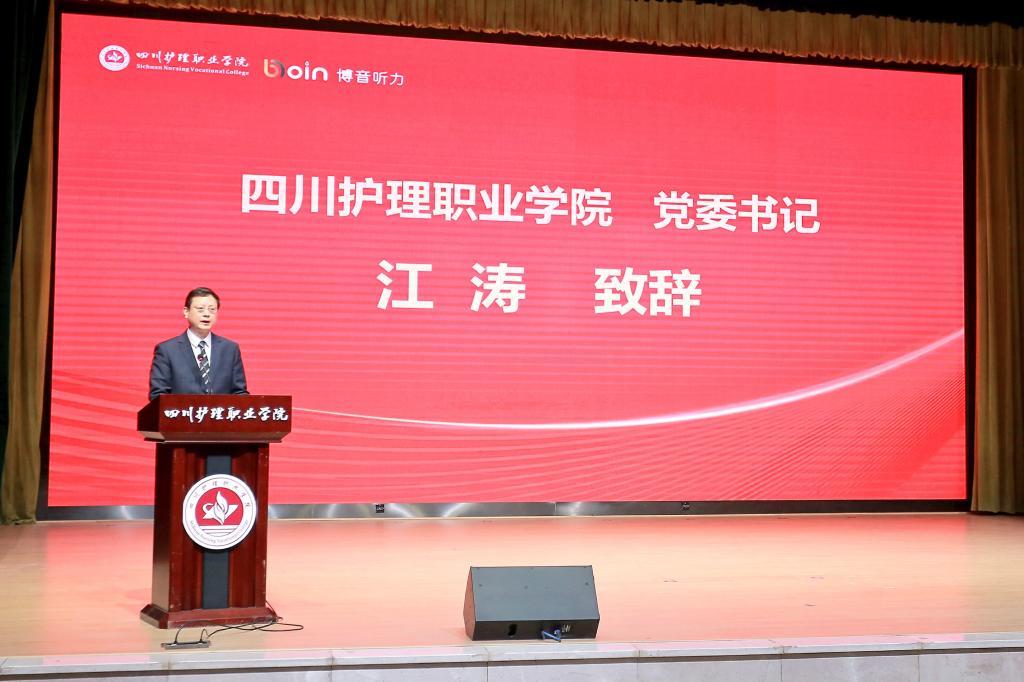 会上,学院党委书记江涛和博音公司董事长江显全分别代表双方致辞。听力康复产业学院由学院与上海博音公司合作共建,集教学、科研和实践为一体。是在国家政策指引下,顺应时代发展、产教深度融合的重要举措。旨在整合双方优质资源,构建特色人才培养基地和产教融合创新高地,共同打造听力康复产业样板。产业学院的揭牌成立,标志着学院在听力康复领域的产教融合迈出重要一步,它不但是学院首个校企共建产业学院、全国首个听力康复产业学院,同时也是目前我省唯一的助听器验配师职业技能等级认定机构。校企双方将以此为平台,构建听力康复产业链、人才链、教育链、创新链“四链”融合新生态,培养更多高素质的专业人才,推动听力康复产业繁荣发展。