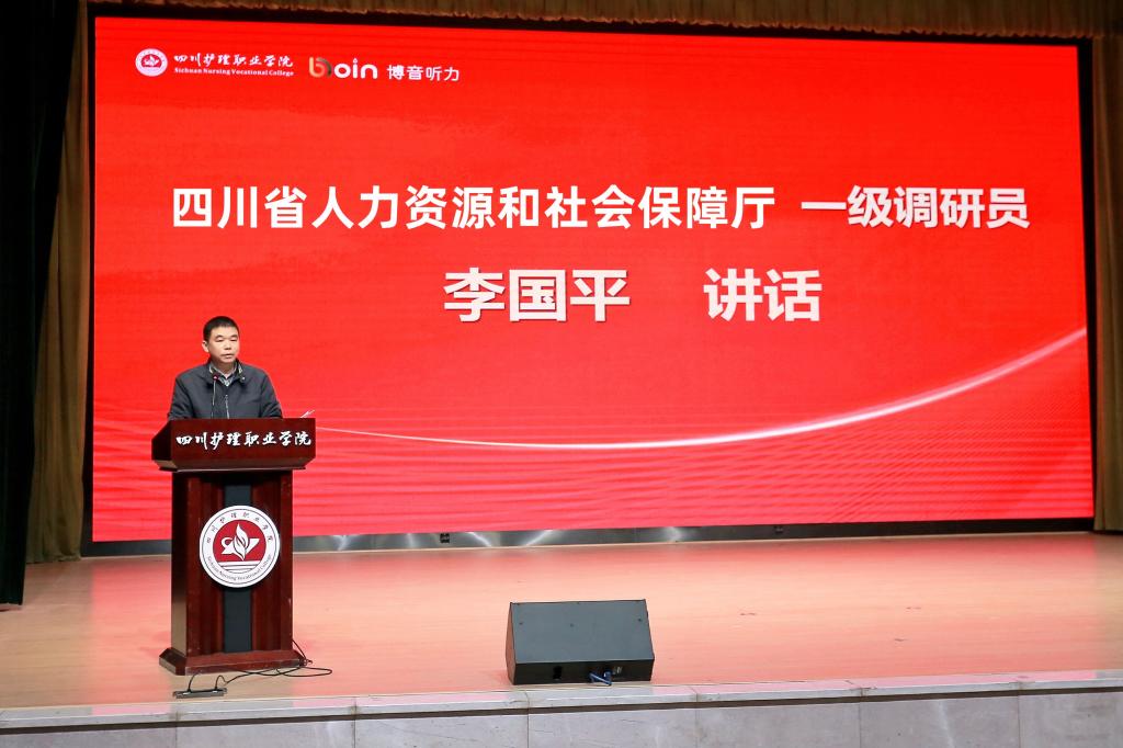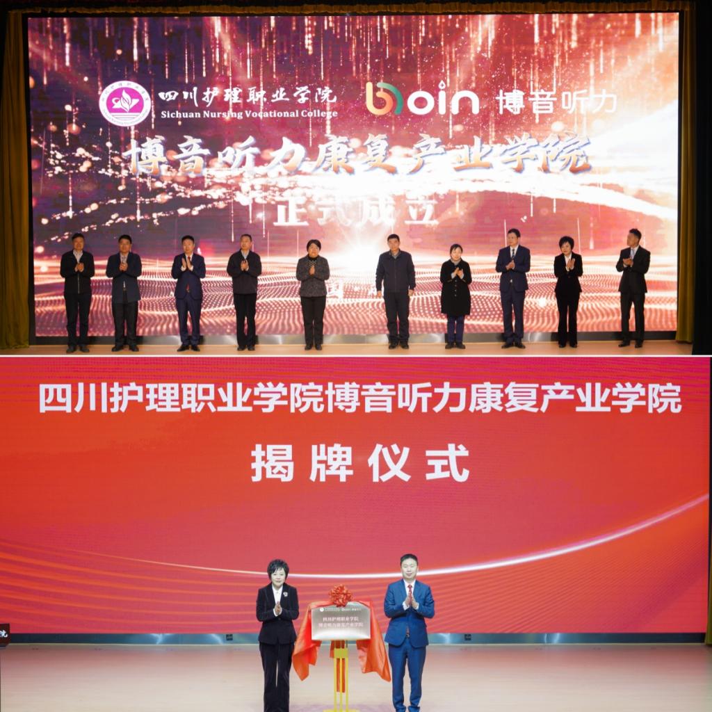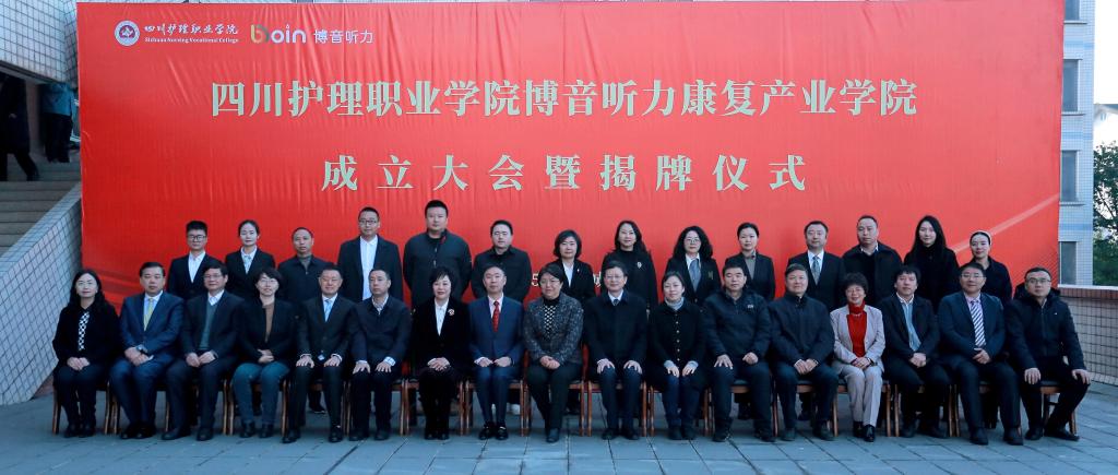 1月11日,bevitor伟德国际1946博音听力康复产业学院成立大会暨揭牌仪式在学院成都校区举行。四川省卫生健康委二级巡视员曹力、科教处处长张翻蓉、四川省人社厅职业能力建设处一级调研员李国平、四川省康复辅具技术服务中心主任陈光庆等有关领导出席大会并讲话。学院领导、博音听力技术(上海)有限公司高层管理团队、行业专家及全体教职员工共360余人参加大会。
