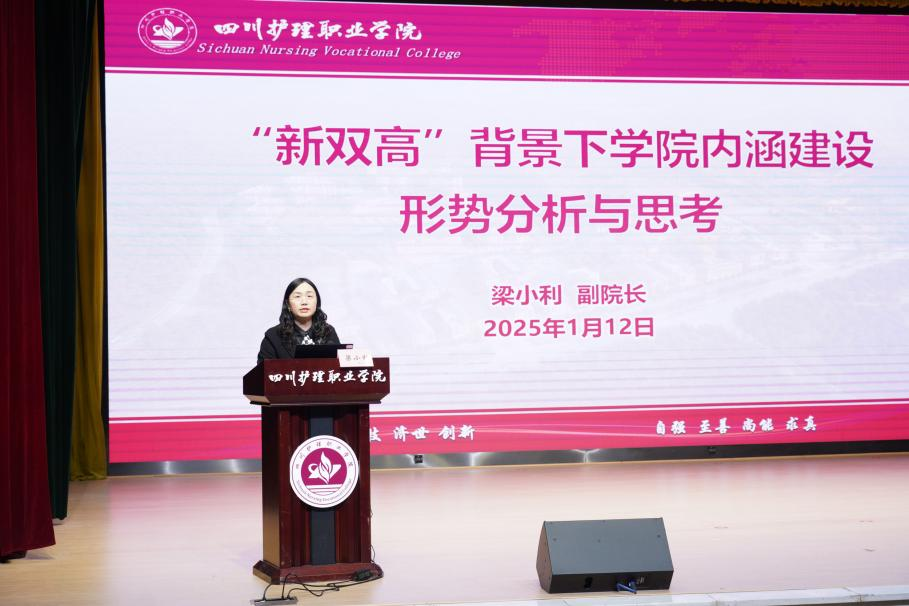 张先庚教授以铸魂育人创“双高”,勇担使命启新程为题,围绕“新双高”建设是什么、怎么做,深入解读了“新双高”计划的时代背景、政策动态和建设思路,深入剖析了学院近年来在开展“双高”计划建设的核心抓手——产教融合的建设现状、取得的业绩和存在的困惑问题。她聚焦学院“1235”发展战略和“新双高”建设目标,聚力现代职业教育体系建设改革要求,结合学院、国家、社会与行业现状与发展,高屋建瓴地提出建设思路、行动举措与发展愿景。她强调,全体教职工要凝心聚力谋发展、奋发有为讲奉献、铸魂育人担使命,争做“五爱五尽”川护人,答好“教育强国”“健康中国”的时代命题,谱写中国式现代化“川护”新篇章!
