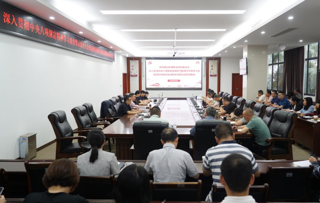 为深入贯彻中央八项规定精神学习教育、全面落实高校领域突出问题系统整治工作的决策部署,推进学院作风纪律建设再巩固、再强化、再提升,5月30日,学院在成都校区召开深入贯彻中央八项规定精神学习教育警示教育大会暨高校领域突出问题系统整治工作动员部署会。全体院领导、中层干部及重点岗位工作人员参加会议,学院党委书记张先庚主持会议。