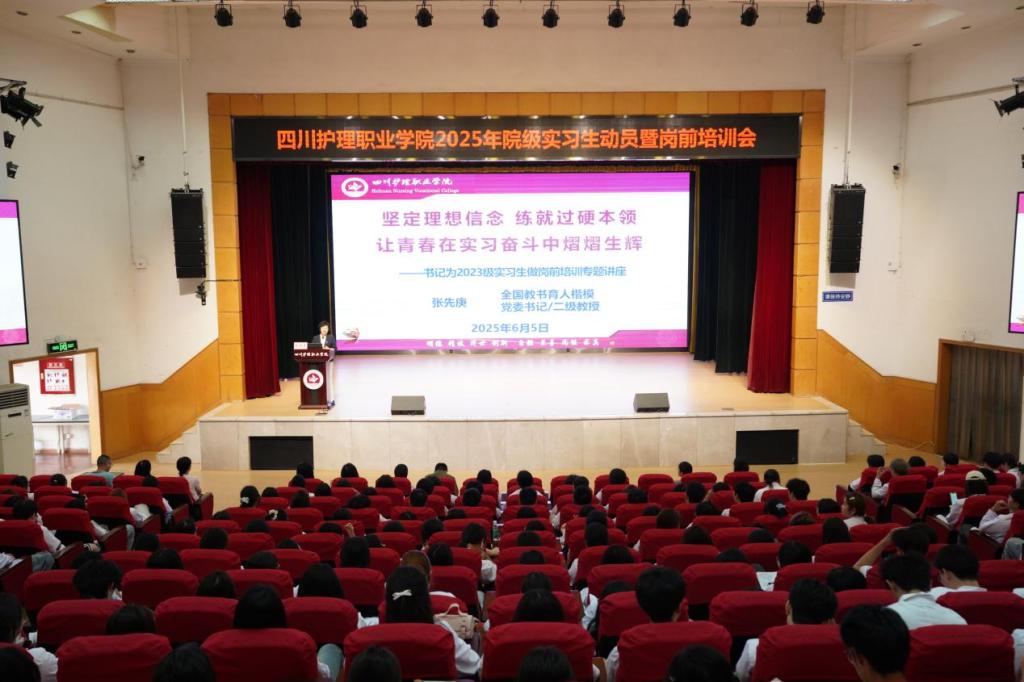 为帮助即将奔赴实习岗位的学生尽快转变角色,明确实习目标、任务与就业知识,6月5日下午,党委书记张先庚教授以“坚定理想信念 练就过硬本领 让青春在实习奋斗中熠熠生辉”为题,通过线上线下结合的方式,为学院2022、2023级约5000名学生开展岗前实习培训和就业指导专题讲座。培训由副院长梁小利主持,教务处、学工部、各系负责人、全体辅导员参加培训。