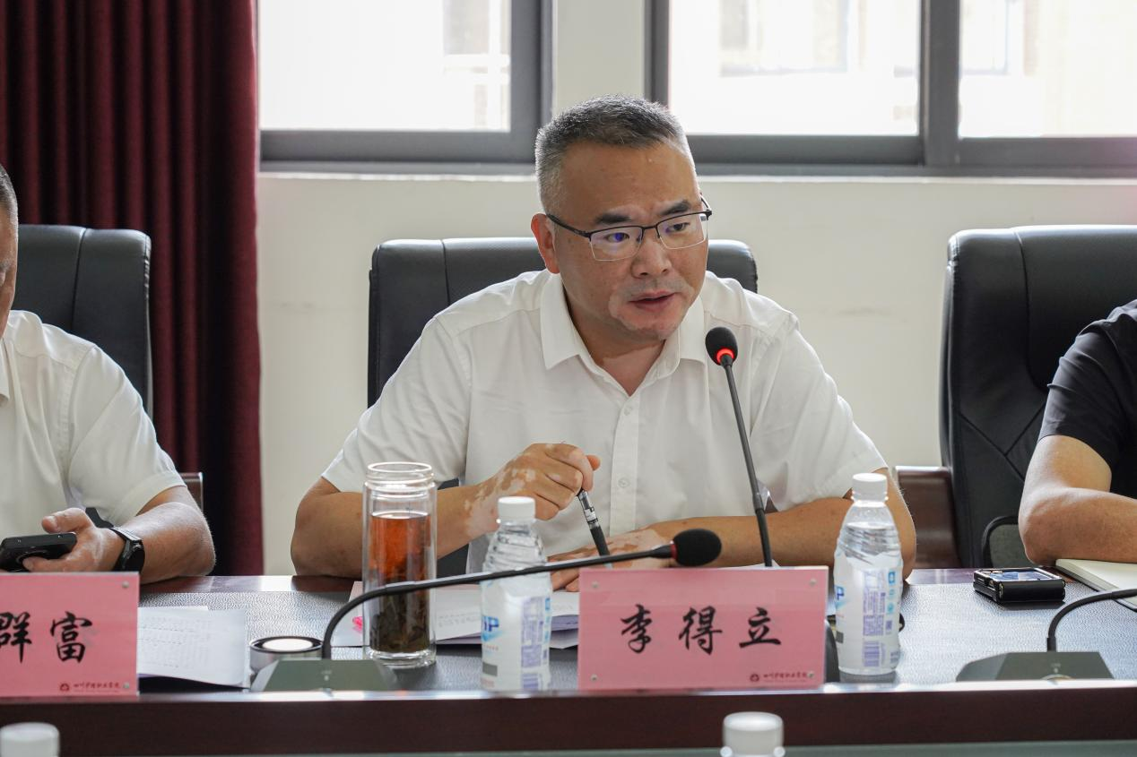 李得立对学院近年来取得的成绩给予高度肯定,就学院提出的需求事项逐一回应,并展开深入讨论。李得立表示,本次调研的核心目的在于增进校地各方沟通了解,切实解决学校发展中遇到的实际困难,旌阳区相关单位将加大政策扶持、提升服务质量,深化与学校的沟通协作,以真情实意、真抓实干推动学院高质量发展,为学院“双高”建设高质量发展保驾护航,共同谱写校地合作新篇章。