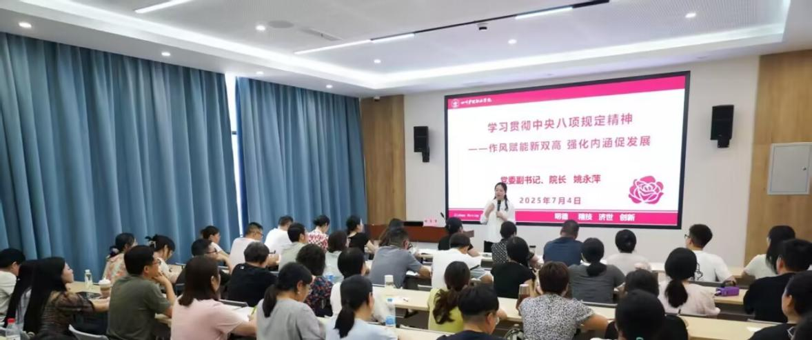 为深入贯彻中央八项规定精神学习教育,进一步强化纪律作风建设,7月4日,学院党委副书记、院长姚永萍以“学习贯彻中央八项规定精神——作风赋能新双高 强化内涵促发展”为题,为审计处、继续教育学院、药学系党员干部讲授专题党课。