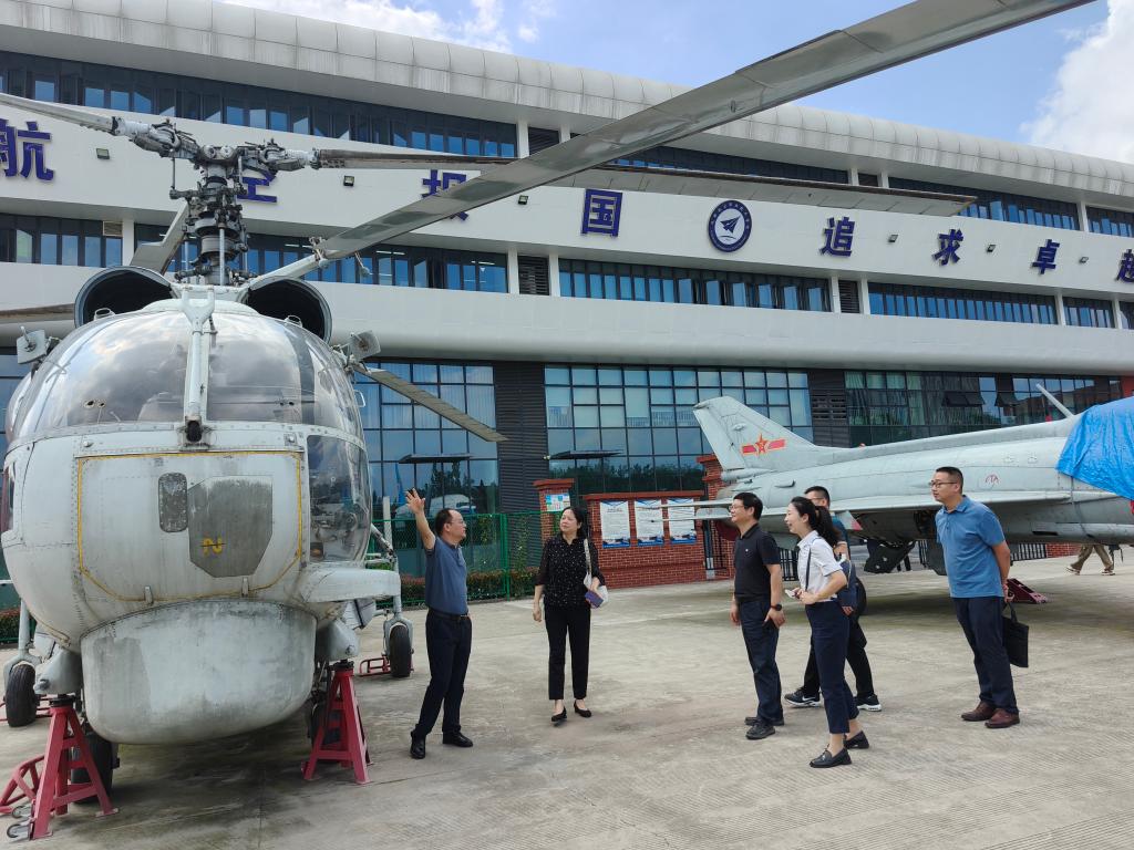 考察组一行重点参观了成都航空职业技术大学精雕技术中心、民航运输实训基地、动力电池智能制造实训基地、无人机创新服务中心和航天馆等。