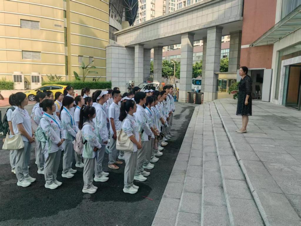 在实训楼前,姚永萍对即将出发到东安湖体育公园户外项目场馆中心上岗的整齐划一、身着统一醒目志愿服的精神饱满、热情洋溢、昂扬向上的“小青椒”志愿者们给予了高度肯定,强调了参与世运会意义重大,勉励大家珍惜实践锻炼机会,认真参加培训学习,在服务中学以致用、积极实践、积累经验,做到以专业赋能实践,以一流服务和饱满精神投入到世运会志愿服务中,展现川护学子的青春风采与使命担当,为盛会增添光彩。
