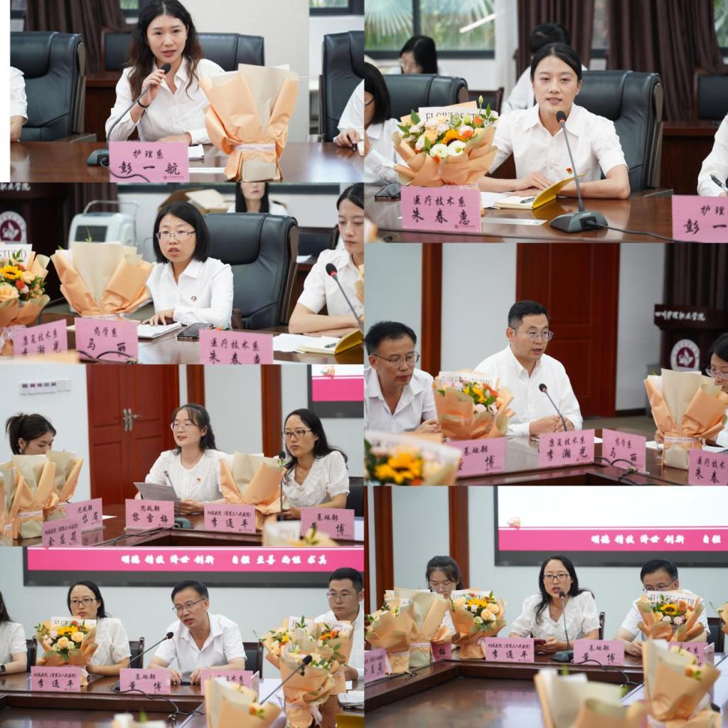 在交流发言环节,来自护理系、康复技术系、药学系、医疗技术系、马克思主义学院、基础部及附属医院的教师代表围绕“以教育家精神铸魂强师,谱写教育强国建设华章”主题,结合自身教学、科研、竞赛、临床等工作实际,畅谈育人初心、共话使命担当。教师代表们一致表示,将坚守教育报国理想,弘扬教育家精神,不断提升教育教学水平,为培养更多高素质卫生健康技术技能人才、推动学院高质量发展贡献力量。