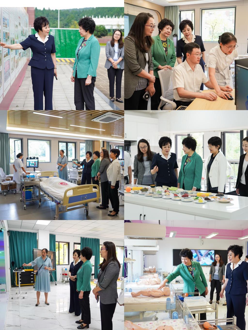 吴欣娟一行参观了学院国家级护理虚拟仿真实训基地,对学院在“一老一小”特色建设、人才培养、专业建设、社会服务等方面取得的成绩给予高度肯定。