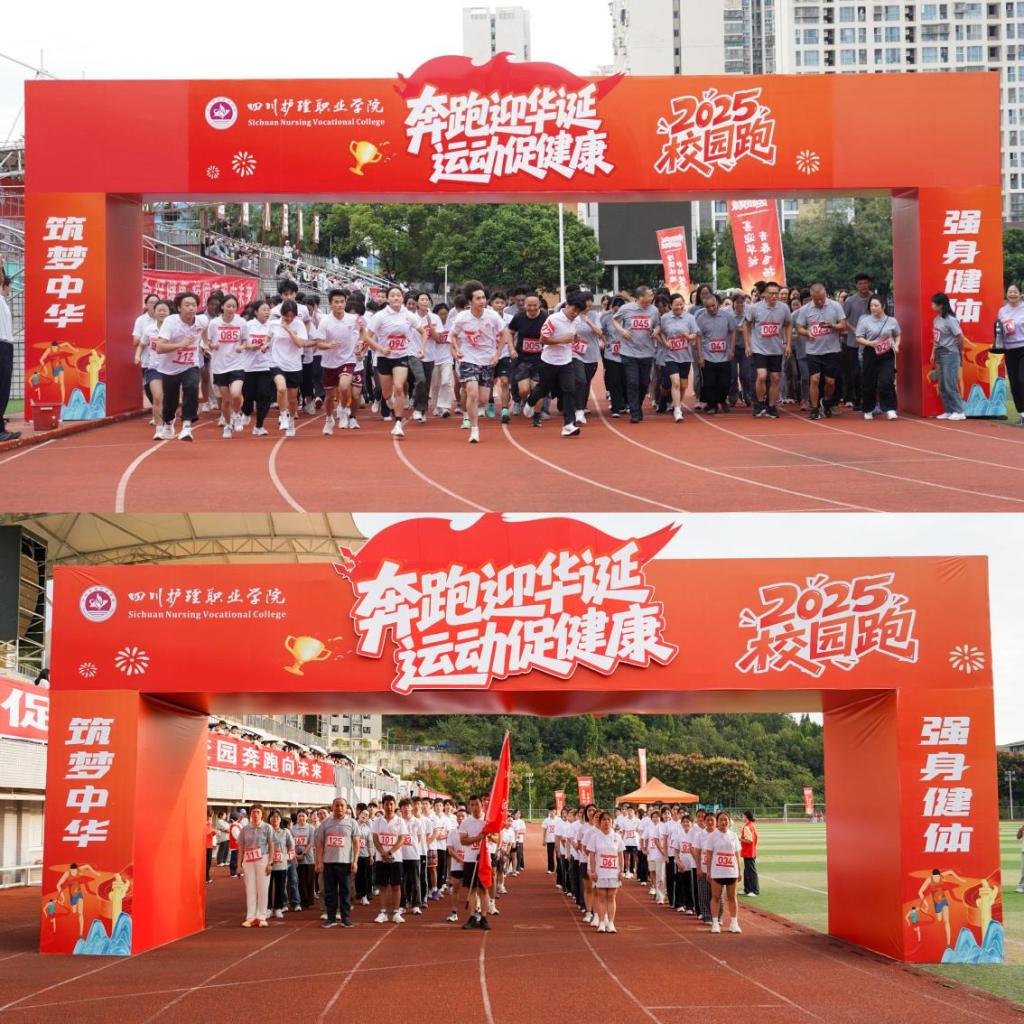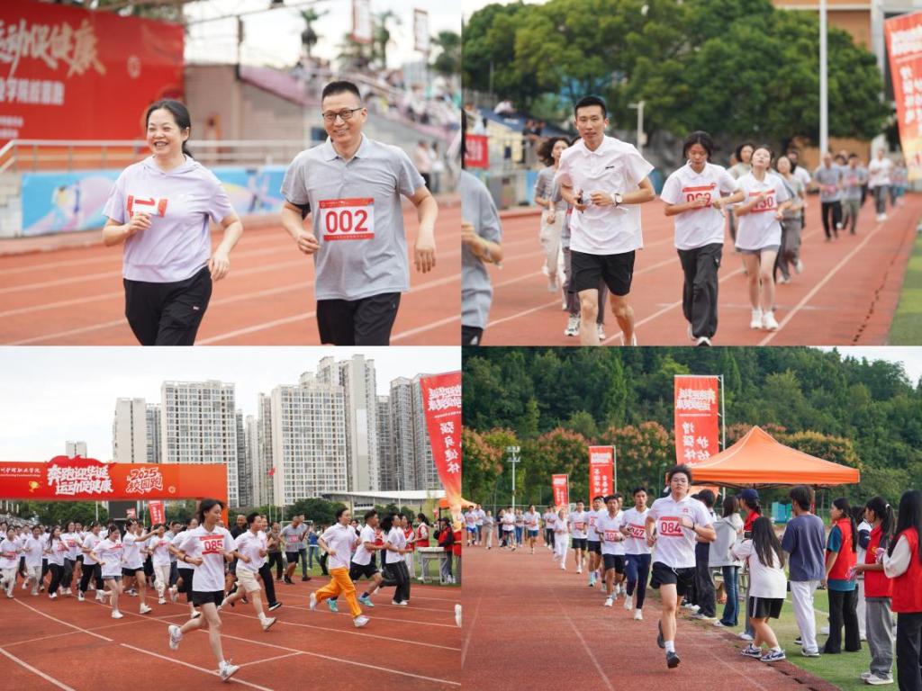 做好跑前准备,一声枪响,参赛师生们如离弦之箭冲出起跑线。跑道上,师生们节奏有序、热情不减。赛道两旁,啦啦队的加油声、欢呼声此起彼伏,与奔跑的脚步声交织成一曲喜迎国庆的青春乐章。