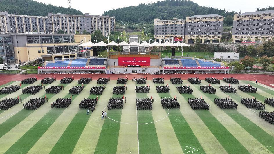 10月9日,学院2025级学生军事训练开训仪式在成都、德阳两校区举行,学院党委副书记、院长姚永萍,德阳市旌阳区人民武装部上校部长杨斌,成都市龙泉驿区人民武装部中校副部长何小青,龙泉驿区怡和派出所所长刘波以及学院相关职能部门负责人、各系党总支书记、辅导员和4000余名新生参加了开训仪式。开训仪式由学院党委副书记彭博文主持。