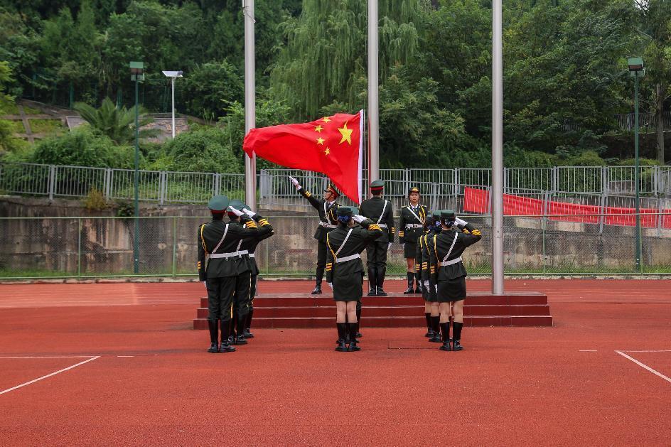 在雄壮的国歌声和庄严的升旗仪式中,军训开训仪式正式拉开序幕。
