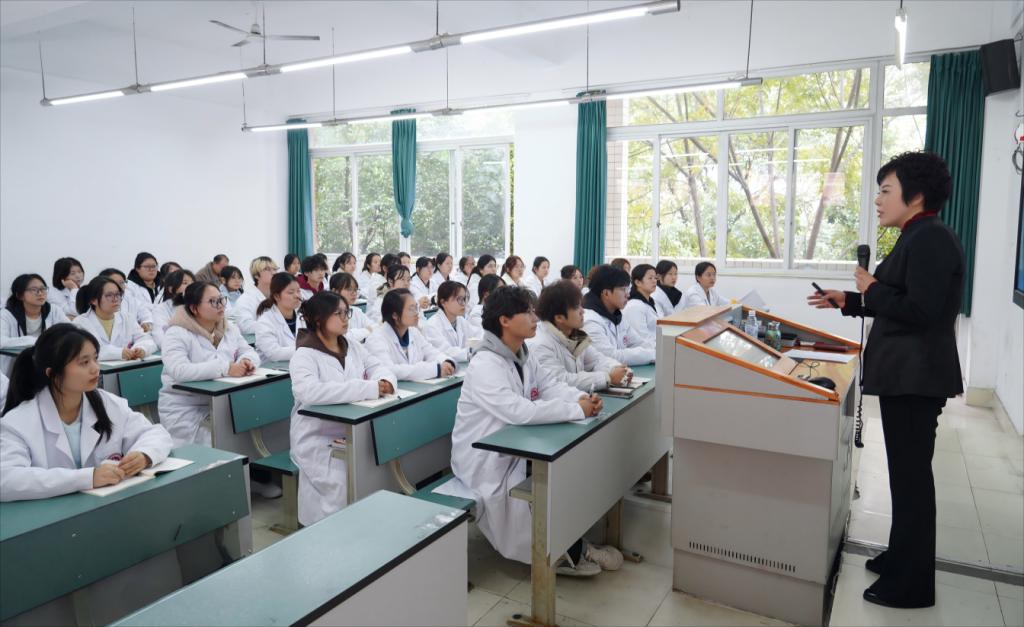 11月6日下午,全国教书育人楷模、学院党委书记张先庚教授走进2024级眼视光技术1班,以“决胜‘十四五’ 奋发向前行”为主题,讲授形势与政策课。医技学院、学生工作部、马克思主义学院教师代表到场聆听。