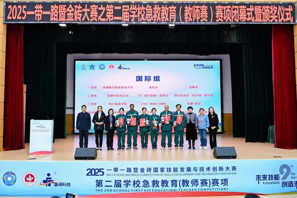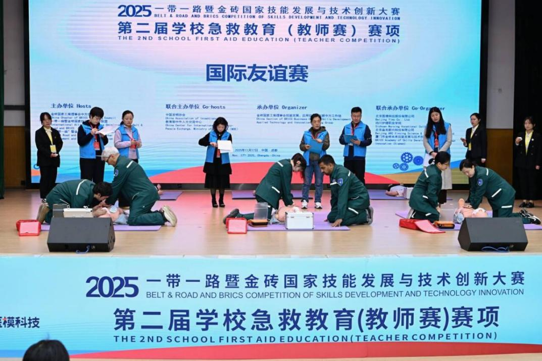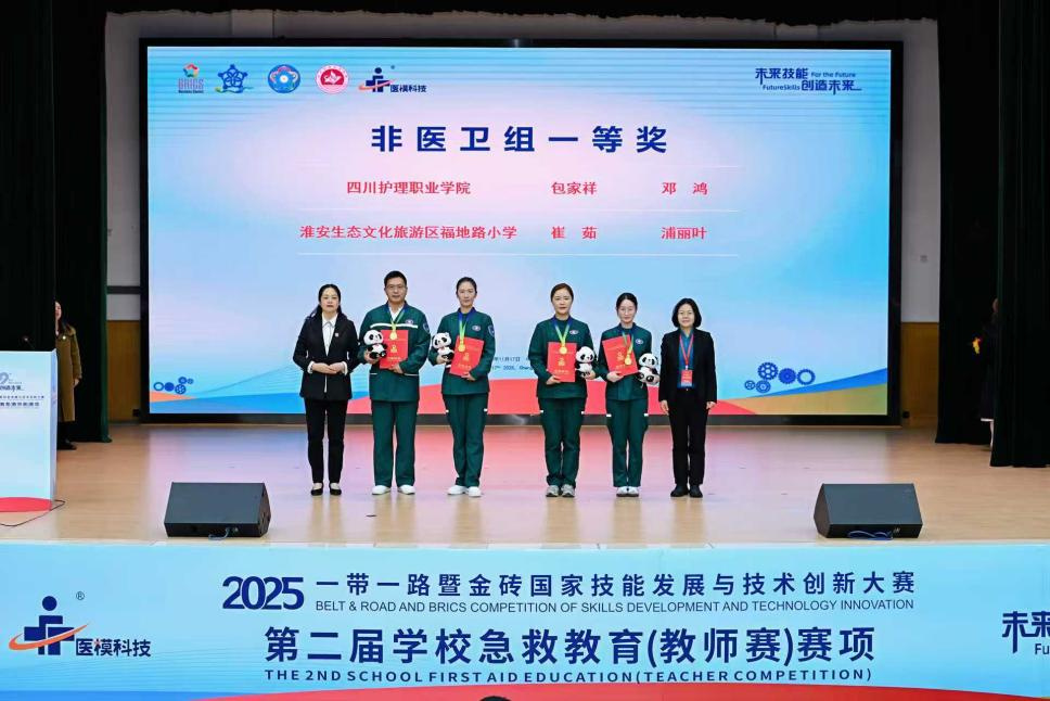 11月15日至17日,2025“一带一路”暨金砖国家技能发展与技术创新大赛第二届学校急救教育(教师赛)在bevitor伟德国际1946成都校区成功举办。本次赛事由金砖国家工商理事会中方理事会、“一带一路”暨金砖国家技能发展国际联盟、“一带一路”暨金砖国家技能发展与技术创新培训中心主办,bevitor伟德国际1946联合承办,于17日上午圆满闭幕。bevitor伟德智慧护理学院教师李英、刘洁荣获医卫组一等奖;基础学院教师邓鸿、包家祥荣获非医卫组一等奖;智慧护理学院教师曾学燕、赵翠霞荣获优秀指导教师奖;学校荣获最佳组织奖、突出贡献奖。