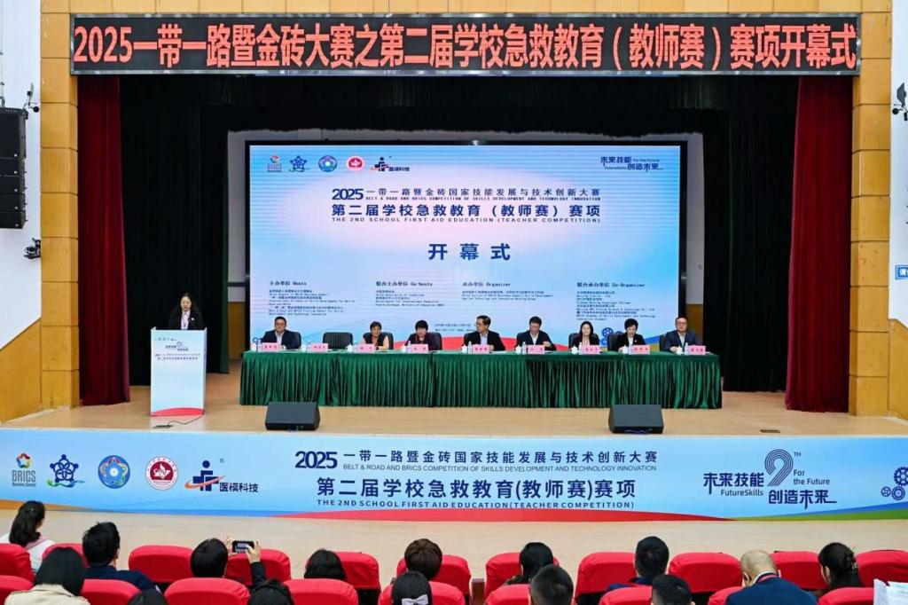 15日下午,大赛开幕式正式举行。金砖国家技能发展与技术创新大赛组委会执委会国内竞赛办公室副主任白丽表示,作为经金砖国家最高领导人认可、在外交部备案的重要国际赛事,该赛事已连续九年纳入《金砖国家工商理事会年度报告》呈送各国元首,累计45万余人次参与相关活动。此次急救教育(教师赛)赛项是大赛在医药大健康领域的重要实践,旨在通过“以赛促教、以赛促学、以赛促改、以赛促建”,提升高素质急救技术技能人才培养水平。