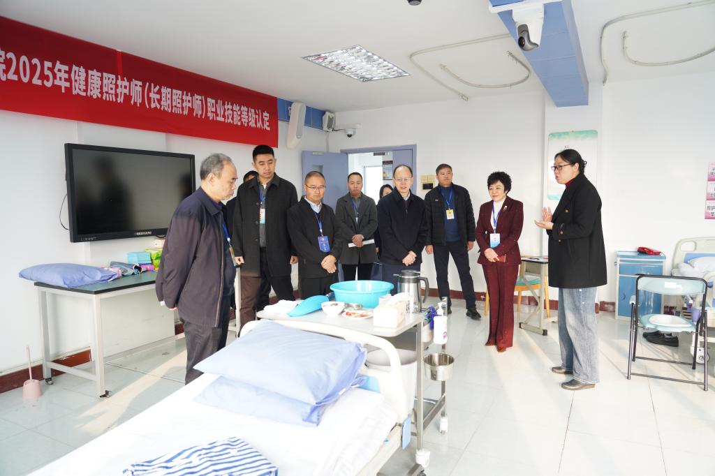 11月30日,2025年全国第三批长期照护师技能等级认定省际联考在学院成都校区举行。本次联考由省医保局、省人社厅联合指导,使用国家统一题库进行考试。学院作为我省唯一认定机构承办本次联考任务。学院党委书记张先庚,党委副书记、纪委书记罗小强陪同相关部门领导对本次联考进行督导。