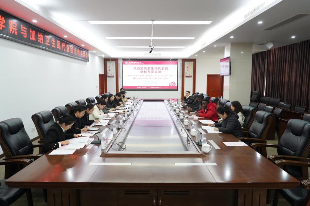 12月1日,加纳传统医学实践委员会执行局长雅库布·托博尔·优素福、加纳卫生局药品与医疗用品管理司司长尼古拉斯·尼亚博努、几内亚卫生部专家克努姆·哈比、西非健康共同体协会会长江思宏等一行7人到学院考察交流,学院院长姚永萍出席,相关职能部门、二级学院负责人参与座谈。会议由副院长梁小利主持。