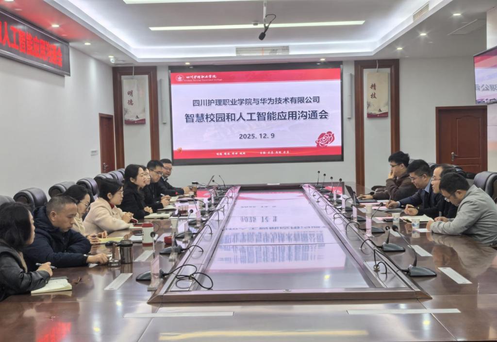为加速教育数字化转型,推动智慧校园建设“十五五”规划,12 月 9 日,学院与华为技术有限公司智慧校园和人工智能应用沟通会在成都校区召开。学院院长姚永萍、副院长梁小利、华为公司川藏总经理胡治平以及校企双方相关部门负责人出席会议。会议由数智康养产业学院筹备专班办公室主任查聪主持。