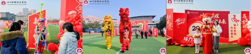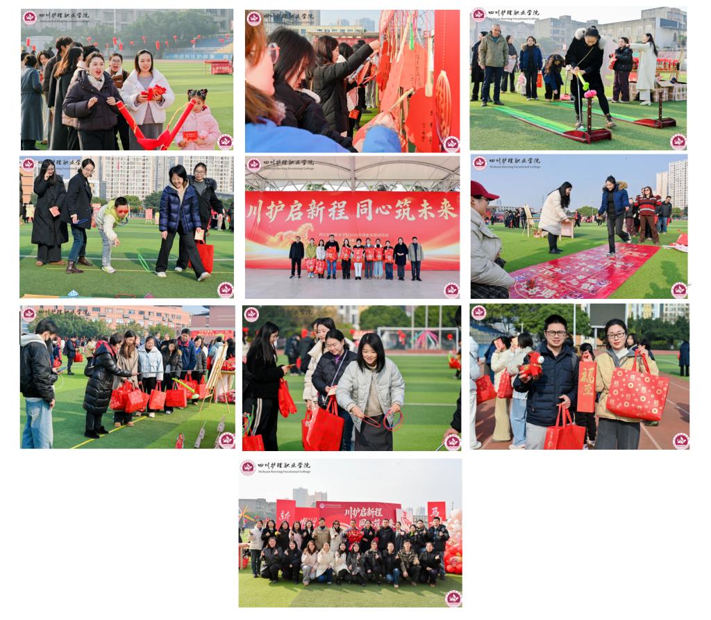 为喜迎2026年新春,丰富教职工精神文化生活,营造欢乐祥和、团结奋进的节日氛围,1月16日,学校工会在成都校区举办“川护启新程 同心筑未来”主题迎新春游园活动。党委书记张先庚、院长姚永萍率领导班子成员出席活动,与全校教职工欢聚一堂,共迎新春。