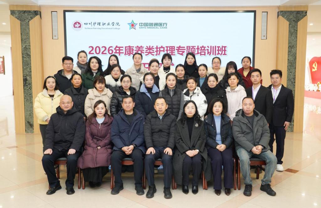 为全面落实国家积极应对人口老龄化战略部署,加强康养护理专业人才队伍建设,1月22日上午,由学校与中国融通医疗健康集团有限公司联合举办的“2026年康养类护理专题培训班”在bevitor伟德成都校区开班。公司党委副书记、董事李小龙,学校党委委员、副院长梁小利出席开班式并讲话。学校继续教育学院院长李毅主持开班式。