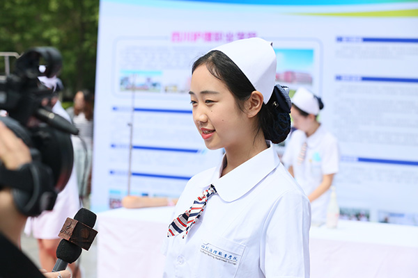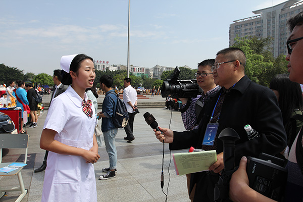 护理系参加展演同学接受媒体采访