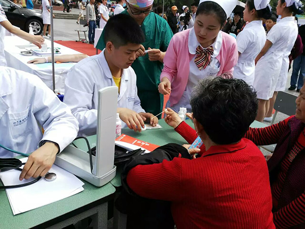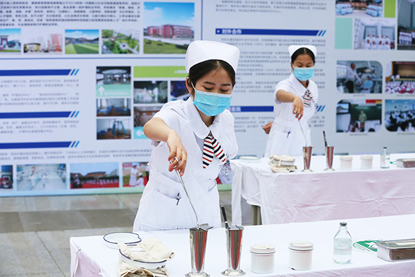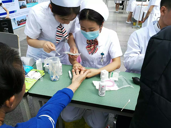 为了充分展现我院护理教育教学成果,呈现学子风采,我院高度重视此次活动,由党委宣传部、护理系牵头,组织协调相关部门从在校学生中遴选了40余名同学,赴活动现场进行护理礼仪、洗手、输液和无菌技术、心肺复苏等医护技能展演,并开展健康体检和健康宣传等为民服务活动,受到与会各界人士的一致欢迎和好评。
