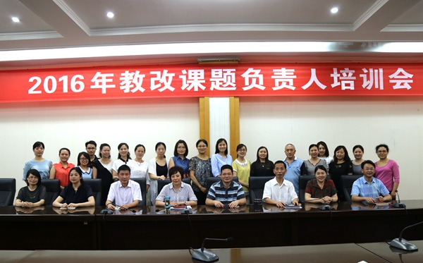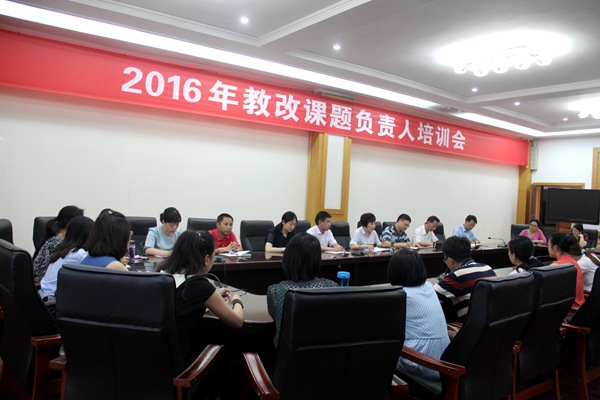 6月27日下午,2016年批准立项的院级教学改革课题负责人培训会在学院综合楼二楼会议室举行,由学院院长张先庚教授主讲,陈劲松校长、姚永萍副校长及20多位教改课题负责人参加培训,此会由学校党委副书记钟海主持。