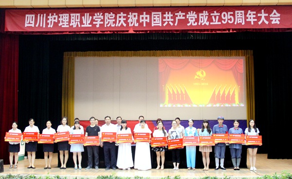 会上,学院院长张先庚同志宣读了省委教育工委、省卫生计生委党组、省卫生计生委直属机关党委和学院党委的表彰决定,学院领导为受表彰的先进基层党支部、优秀共产党员、优秀党务工作者颁发证书。陈劲松校长宣读了学院党委确立共产党员示范岗及共产党员示范团队的文件,学院领导为19名共产党员示范岗个人及7个共产党员示范团队授牌。
