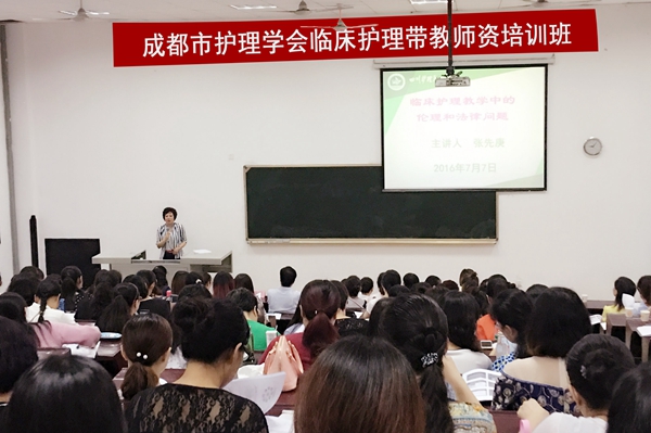 7月7日,由成都市护理学会教育专委会主办的“临床护理带教师资培训班”在四川大学华西校区正式开班,来自全省100多名临床护理专家和带教师资参会。我院院长张先庚教授作为教育专委会副主任受邀参会主持,并做专题讲座。
